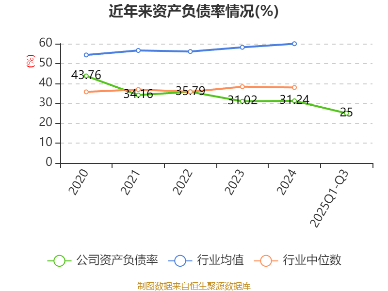 2025年前三季度,公司流动比率为3.73,速动比率为3.31。