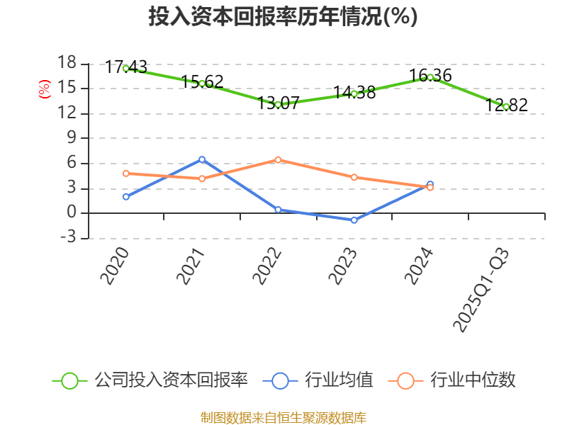 盈利能力方面, 2025年前三季度公司加权平均净资产收益率为13.04%,同比上升1.12个百分点。公司2025年前三季度投入资本回报率为12.82%,较上年同期上升1.89个百分点。
